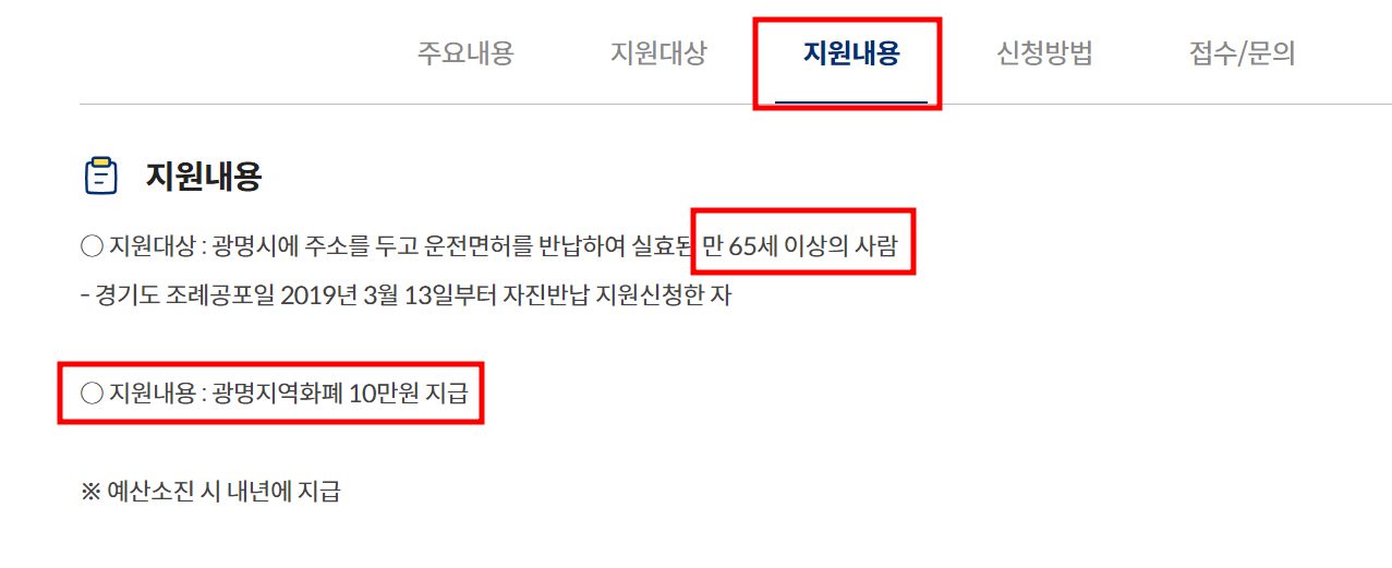 지원내용은 광명지역화폐10만원 지급입니다.