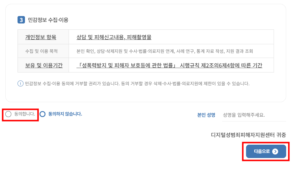3. 피해자 지원안내 동의서에 체크해 주세요