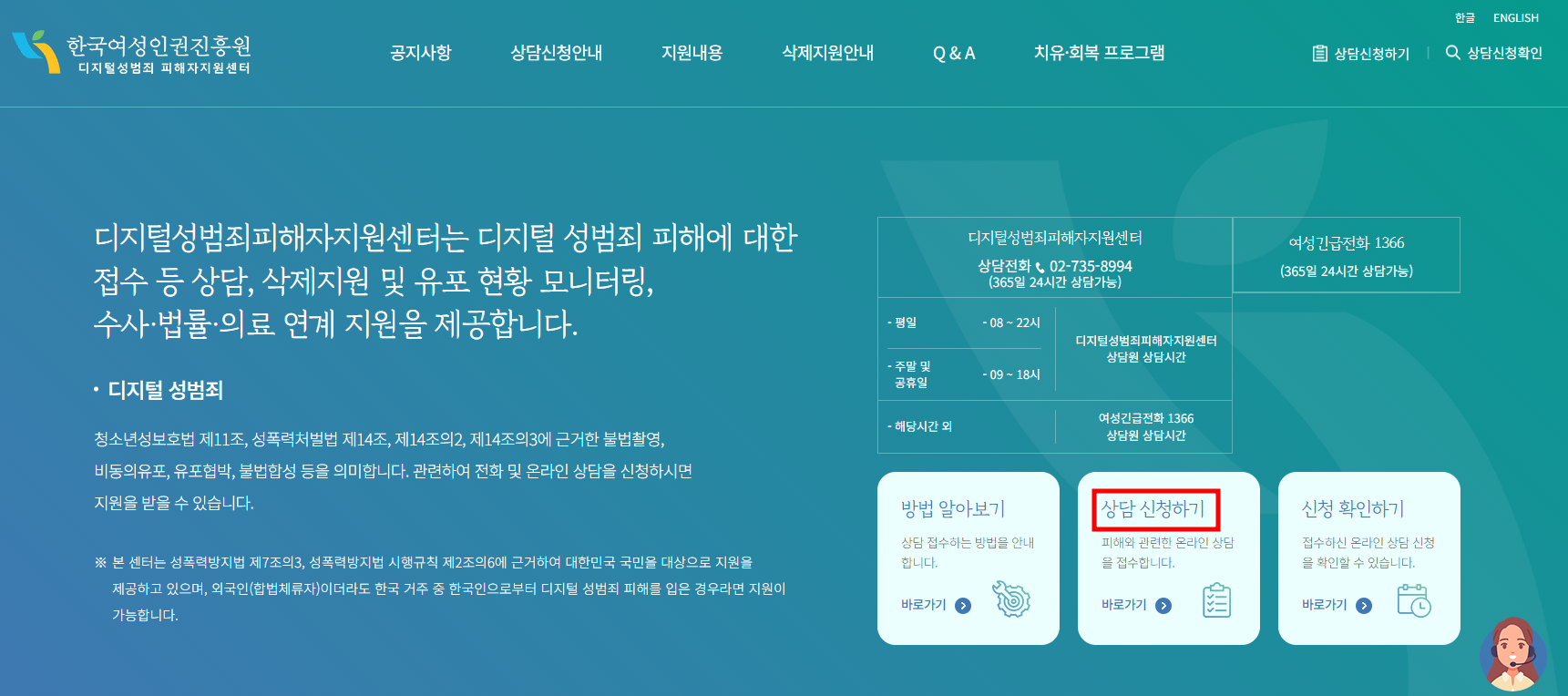 디지털 성범죄 피해자 상담신청 방법