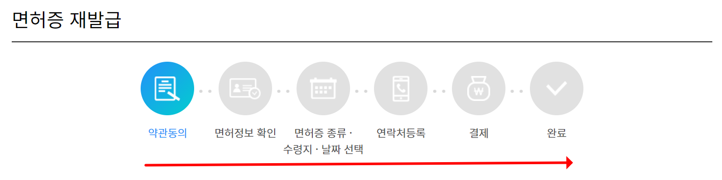 이제 면허증 재발급부터 정보를 하나씩 하나씩 확인해 주시고 입력해 주세요