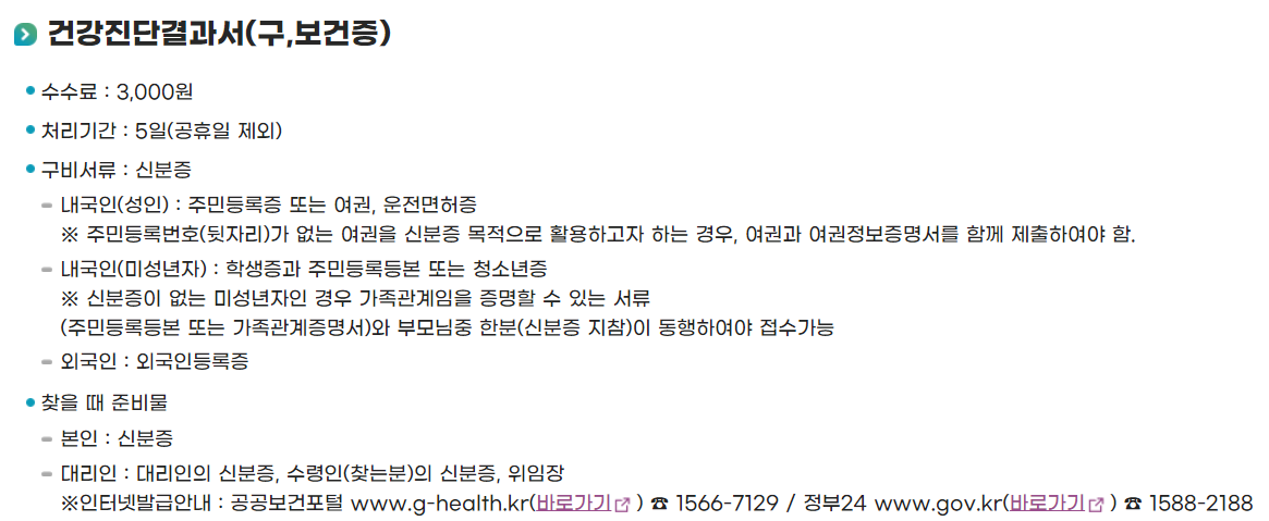 건강진단결과서(구, 보건증) 신청시 수수료와 신청시 구비서류