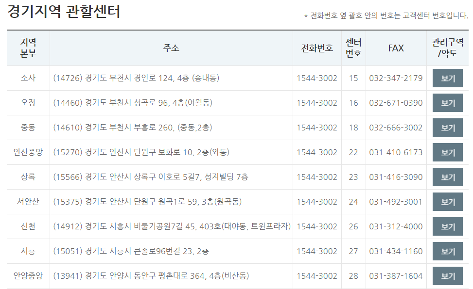 홈페이지에서 고객센터 위치를 검색해서 찾을 수 있습니다.