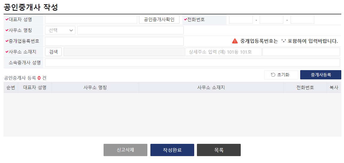 공인중개사 정보 입력