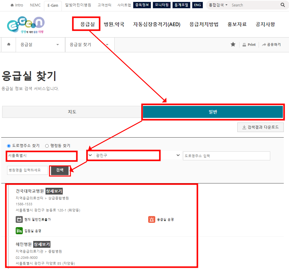 응급의료포털 E-gen에서 쉽게 찾을 수 있습니다.