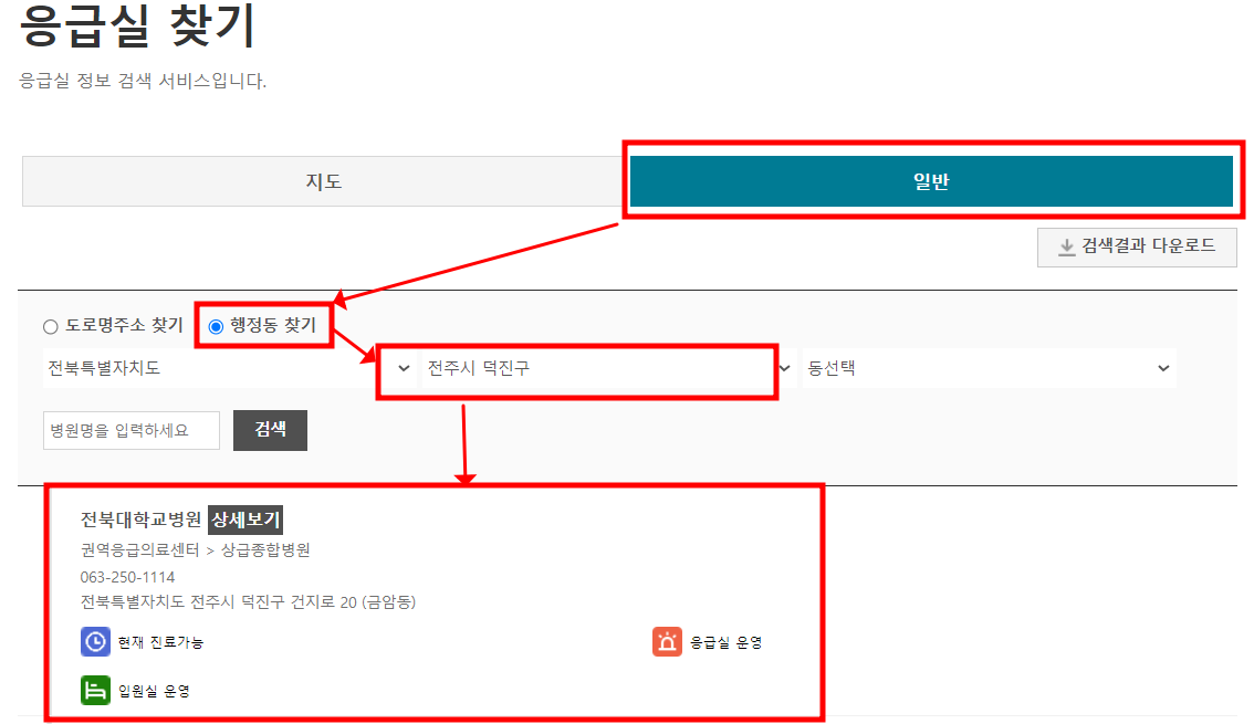 전북지역 응급실 병원 검색 방법