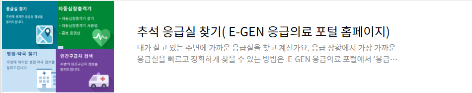 | 추석 응급실 찾기( E-GEN 응급의료 포털 홈페이지) (0) | 2024.09.11 |