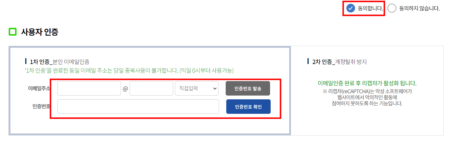 - 이메일 인증과 리캡차를 통해 사용자 인증을 진행합니다.