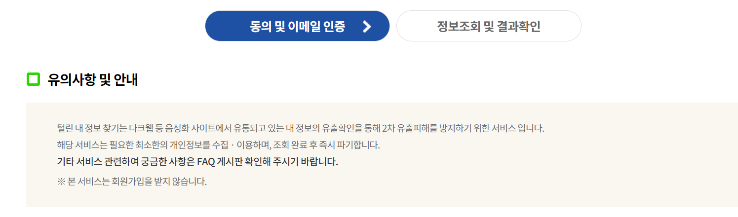 털린 내 정보찾기 서비스 이용 방법에 대해 설명드릴 테니 바로 조회해 보세요.