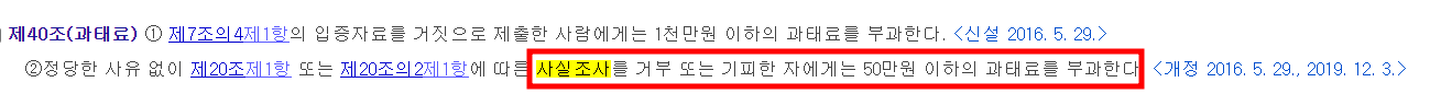 ✅ 만약 사실조사를 거부하거나 기피하면50만 원 이하 과태료를 부과할 수 있으니 꼭 사실조사에 참여하셔야 합니다.