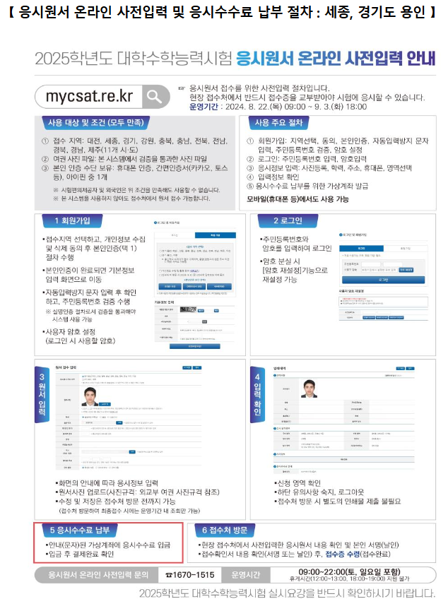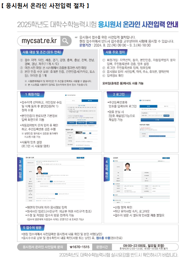 올해는 온라인 사전 접수 시스템의 확대 적용으로 인해 2025년 수능 응시 신청 절차에 일부 변경 사항이 있습니다.